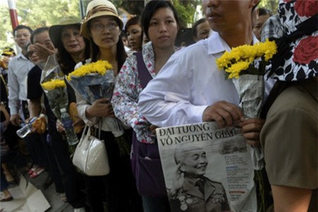 | Dòng người xếp hàng vào viếng đại tướng tại nhà riêng ở Hà Nội. |