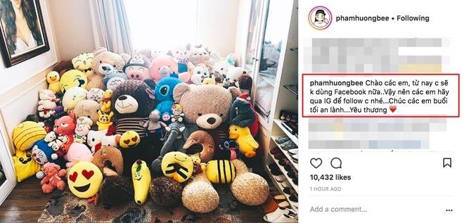 "Chào các em, từ nay chị sẽ không dùng Facebook nữa. Vậy nên các em hãy qua Instagram để follow chị nhé. Chúc các em buổi tối an lành. Yêu thương", người đẹp đất Cảng nhắn nhủ.