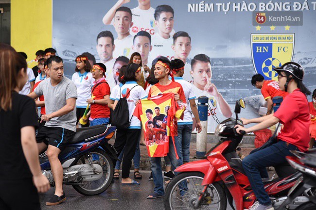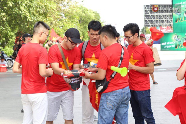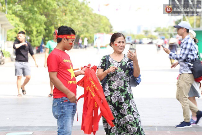 Tại sân vận động Hàng Đẫy (Hà Nội), ngay từ đầu giờ chiều, nhiều người đã mang áo cờ đỏ sao vàng, băng rôn, kèn trống đến bán phục vụ nhu cầu mua tại chỗ của cổ động viên.
