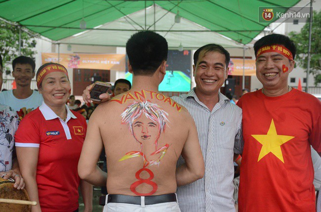 Thậm chí hình ảnh của Văn Toàn còn được vẽ phía sau lưng một người hâm mộ