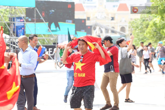 14h30, Phố đi bộ Nguyễn Huệ đã bắt đầu đông người hâm mộ tập trung để chuẩn bị theo dõi trận đấu bán kết ASIAD 2018.