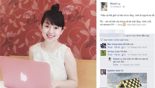 Hồng Quân và Ly "Kute" chính là khi hot girl này chia sẻ trạng thái: "Nếu cả thế giới có hét với em rằng: Anh là người không tốt. Thì em sẽ hét vào từng cái tai một rằng: Anh ý tốt với em".