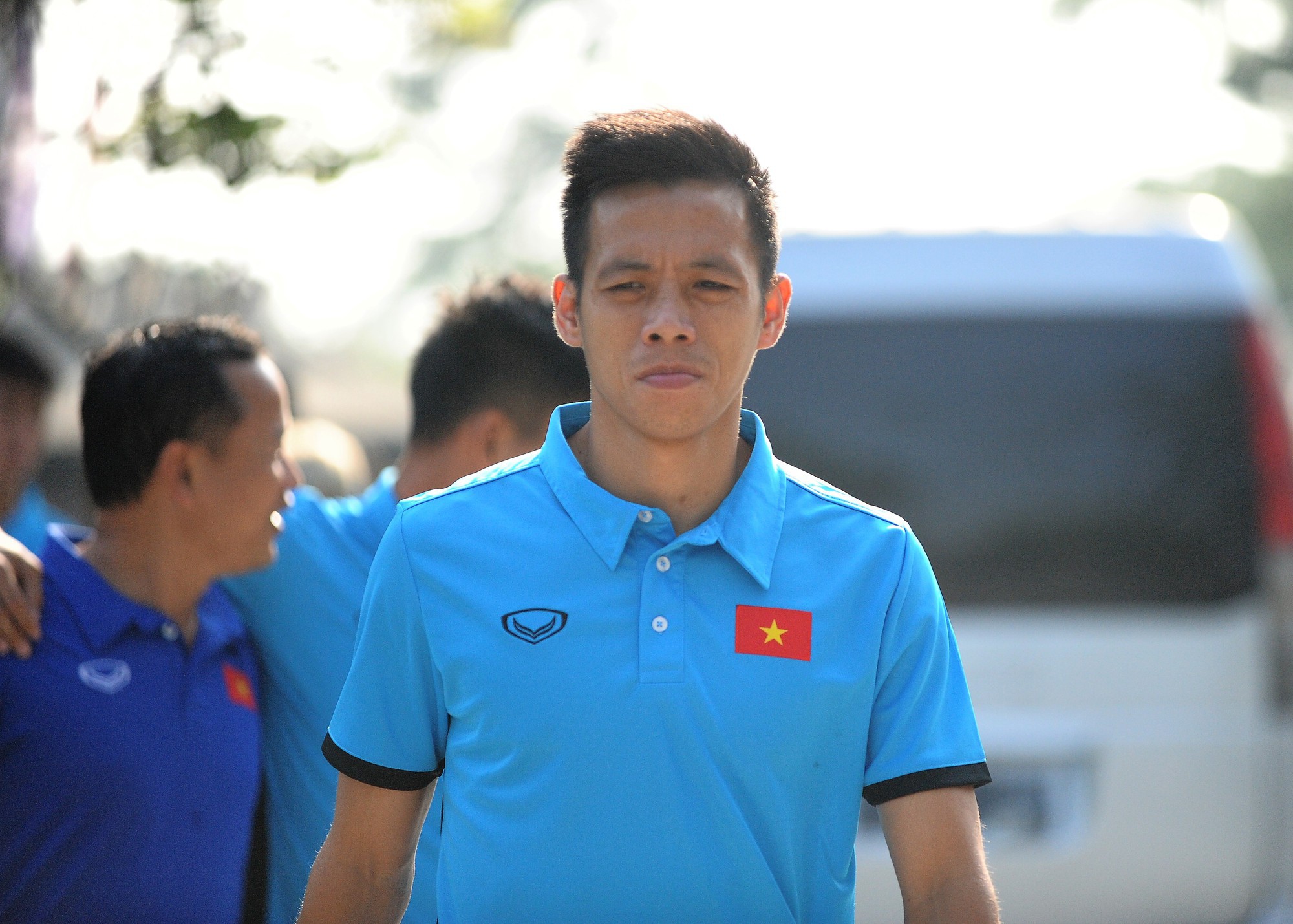 Xuân Trường có vẻ hợp cạ với em út Văn Hậu. Hai cầu thủ vừa đi vừa nói chuyện rất vui vẻ.