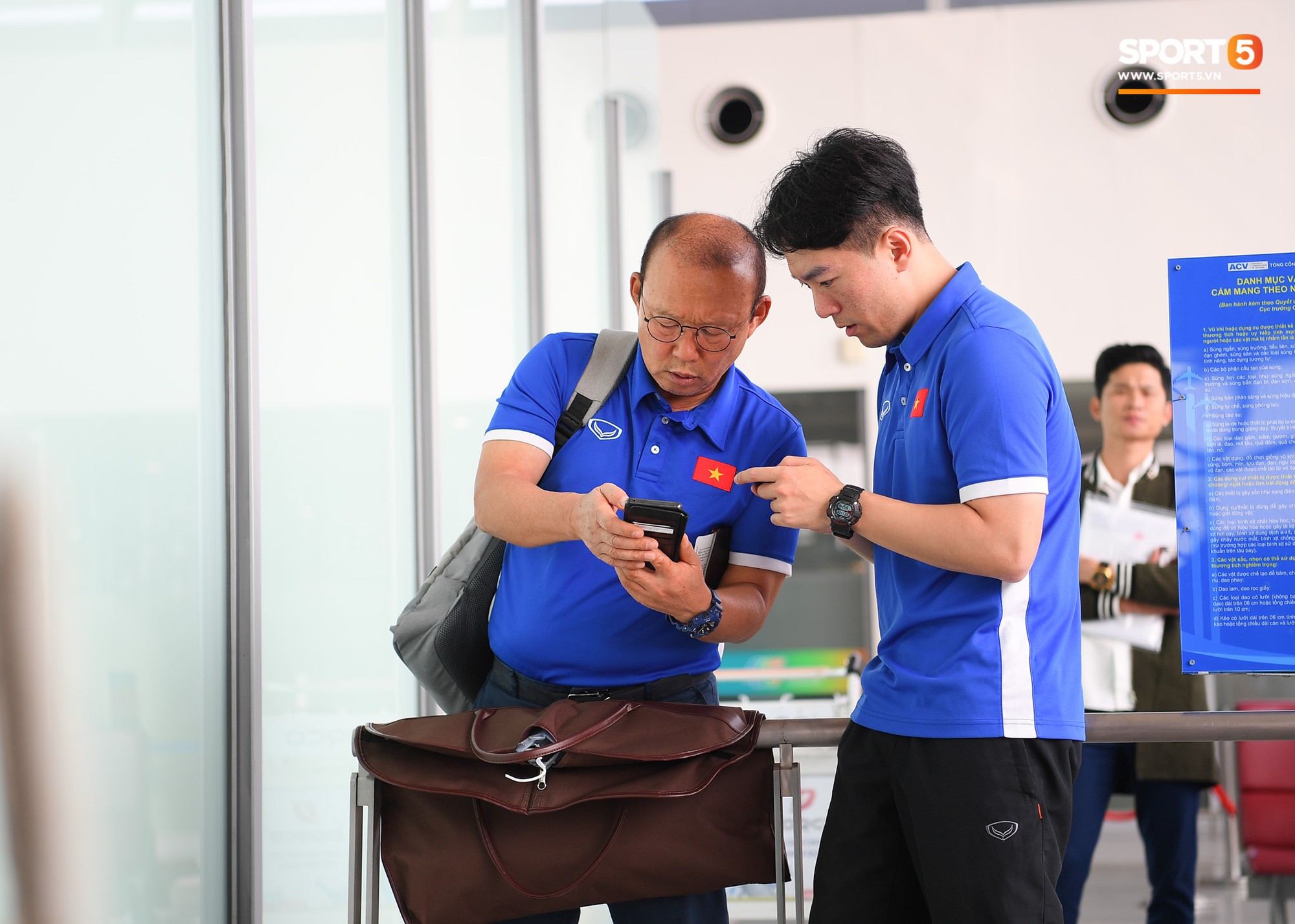 Trong khi đó, HLV Park Hang Seo cẩn thận kiểm tra thông tin với trợ lý ngôn ngữ Hàn - Anh Chung Kyu-jin.
