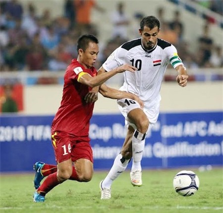 Xuân Thành trong một pha đeo bám Mahmoud của Iraq |