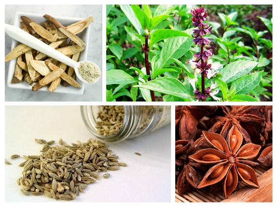 Đây có lẽ là cách làm nở ngực đơn giản nhưng lại mang hiệu quả cao. Hỗn hợp thảo dược gồm rễ cam thảo, hạt hồi, hạt thì là, hoa húng quế đem xay nhỏ thành bột mịn để sử dụng, có khả năng kích thích hoocmon làm tăng kích thước vòng 1 đáng kể.