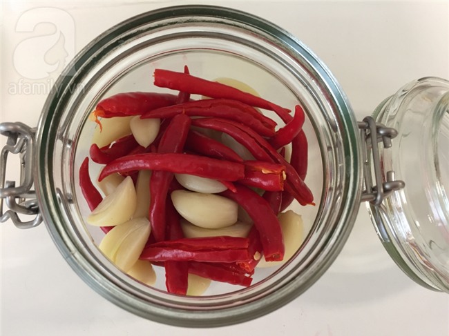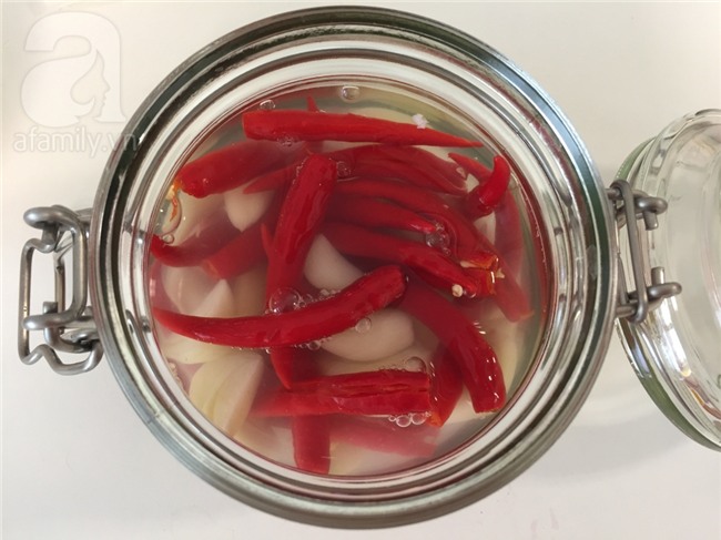 Đổ phần nước giấm nguội lên ngập mặt tỏi ớt. Đậy kín nắp để khoảng 1 ngày là có thể dùng được.