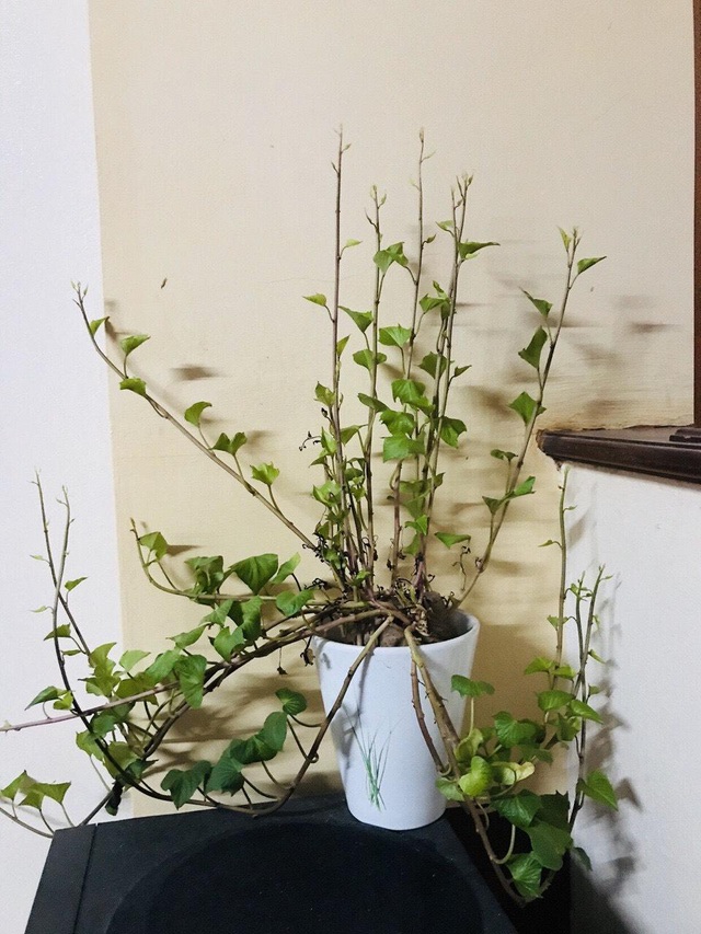 Những loại cây như hành tây, khoai lang, bơ… thường được chị Hương trồng trong bình nước. “Chỉ cần đặt củ, hạt vào bát, chậu, chai nước, để củ, hạt tiếp xúc một phần với nước rồi chờ đợi. Vậy là xong!”, chị Hương chia sẻ. Trong ảnh là một cây "bonsai" khoai lang khá độc đáo.