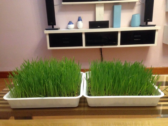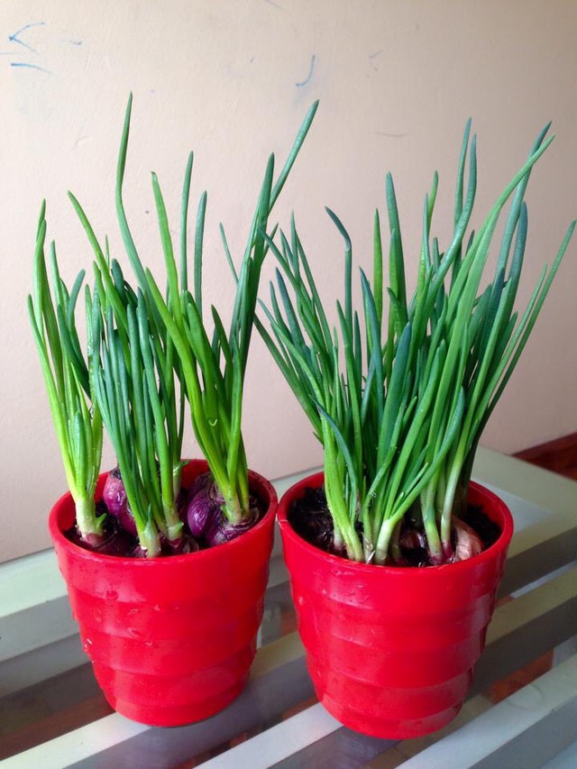 Ban đầu chị Hương trồng chủ yếu là khoai lang, mạ non, sau đó chị tìm đọc rồi trồng nào hạt mít, hạt bí đỏ, hành tây, tỏi tươi… để trang trí trong nhà.