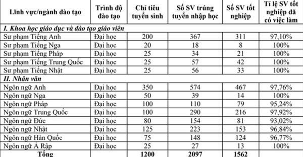 Tỷ lệ sinh viên ra trường có việc làm của Đại học Ngoại Thương