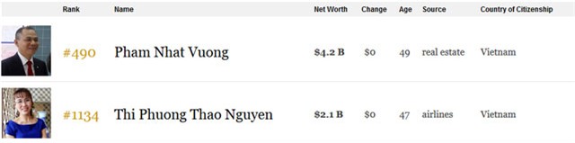 Theo số liệu mới nhất của Forbes, tính đến hết ngày 23/11, tài sản của ông Phạm Nhật Vượng, Chủ tịch Tập đoàn Vingroup đã tăng lên 4,2 tỷ USD và chính thức lọt vào top 500 người giàu nhất hành tinh. Ông Vượng hiện là người giàu thứ 490.