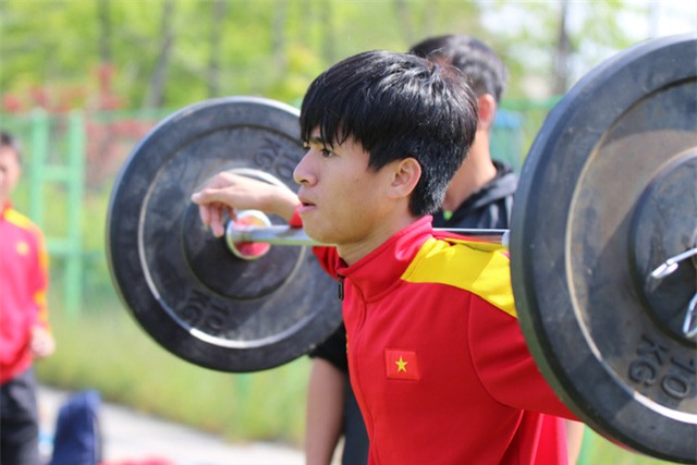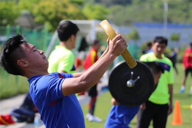 Chỉ còn vài ngày nữa U20 World Cup 2017 sẽ diễn ra, U20 Việt Nam đang tích cực chuẩn bị cho giải đấu này. Trong sáng nay, các cầu thủ đã phải căng mình tập luyện với các bài tập liên quan tới tạ.