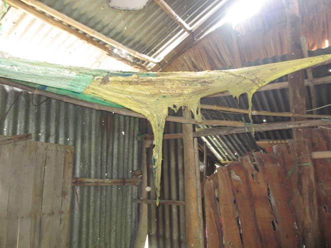 Tấm cao su che chắn bị cháy biến dạng. (Ảnh: Thanh Lâm).