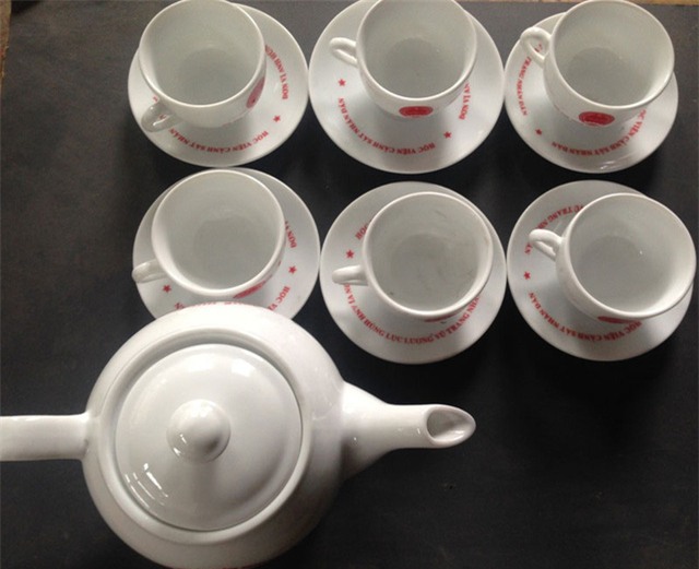 Nhưng đến lúc xem món quà để tặng bố mẹ đẻ chị không khỏi ngỡ ngàng. Đó là một bộ ấm chén thuộc hàng đại hạ giá. Trên ấm còn ghi tên cơ quan đặt. Theo như chị được biết đây là hàng cơ quan đặt làm quà tặng nhưng sau đó thừa thì người ta đem ra bán lại với giá chỉ 80-120 nghìn đồng.