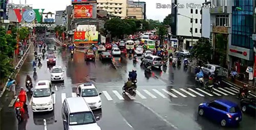 Không chỉ tuyến đương vành đai mà ngay cả nhiều tuyến phố trung tâm cũng ùn tắc kéo dài. Phố Nguyễn Thái Học cũng ùn tắc từ đoạn trước cổng bến xe Kim Mã. Ảnh: VOV Giao thông. |