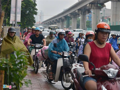 Thấy tắc đường, nhiều người nháo nhào đi ngược chiều từ Linh Đàm về Nguyễn Trãi đi cho kịp giờ làm khiến giao thông thêm hỗn loạn, ùn tắc thêm trầm trọng. Ảnh: Hoàng Anh. |