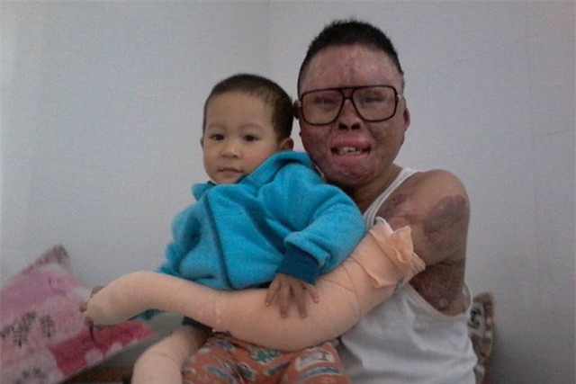 Anh Dương tăng cân, vẻ ngoài mập mạp hơn nhiều so với cái ngày anh nằm bất động trên giường cấp cứu. Khuôn mặt kín sẹo do bỏng nhưng đã biết cười và nói tếu.