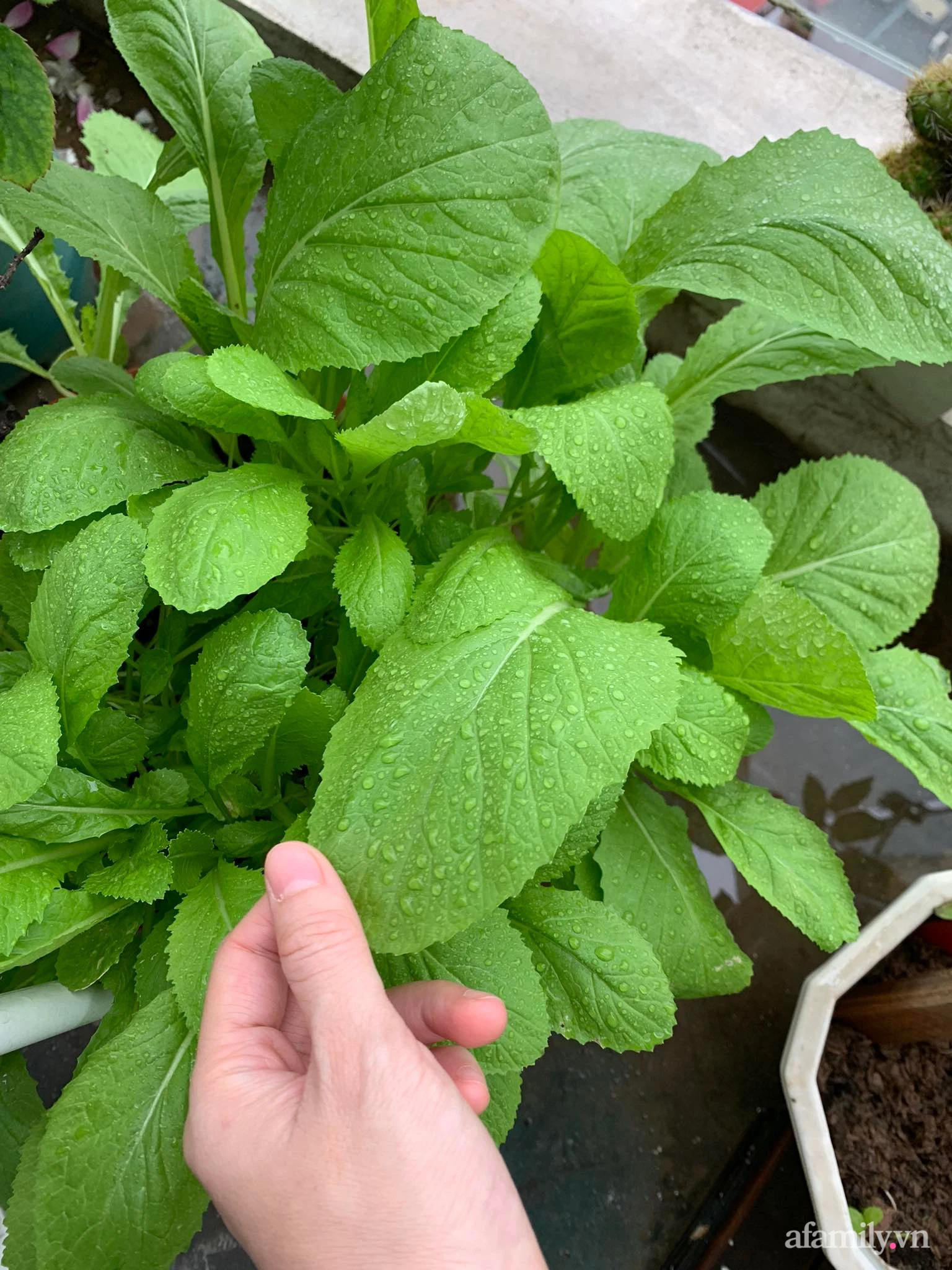 "Mình đã ăn được vụ cải đầu tiên rồi, nấu được bát canh cải thịt mà sướng như ăn sơn hào hải vị. Đúng là nên thử trồng rau để còn hiểu và quý từng món ăn. Từ ngày trồng rau cải, mình thấy quý lắm luôn”, bà mẹ trẻ hào hứng chia sẻ.