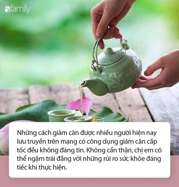 Tuy nhiên, vị chuyên gia này khẳng định, đây là suy nghĩ hoàn toàn sai lầm. Những cách giảm cân được nhiều người hiện nay lưu truyền trên mạng có công dụng giảm cân cấp tốc đều không đáng tin. Không cẩn thận, chị em có thể ngậm trái đắng với những rủi ro sức khỏe đáng tiếc khi thực hiện giảm cân theo những cách không có bằng chứng khoa học này.