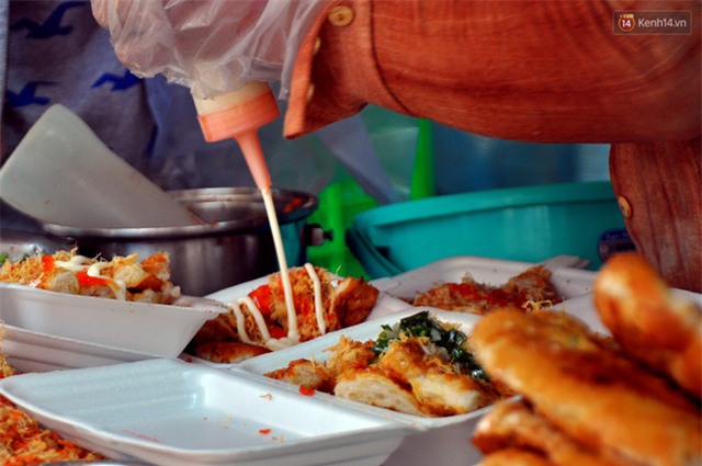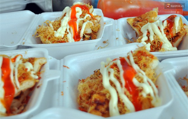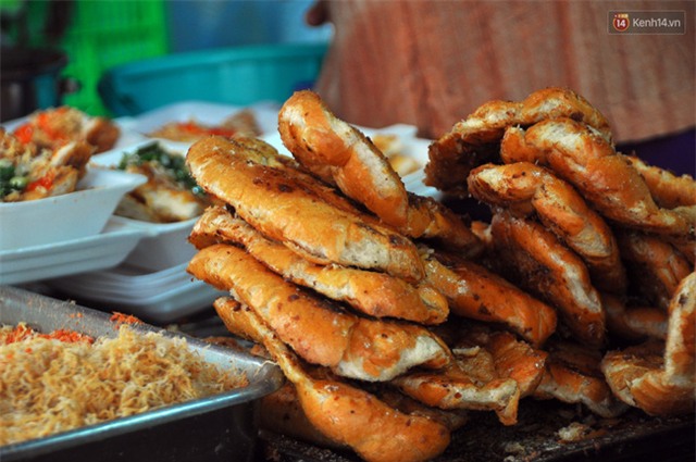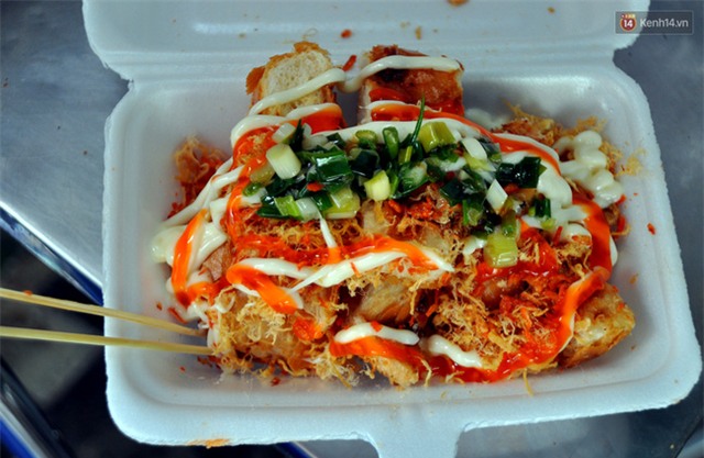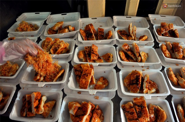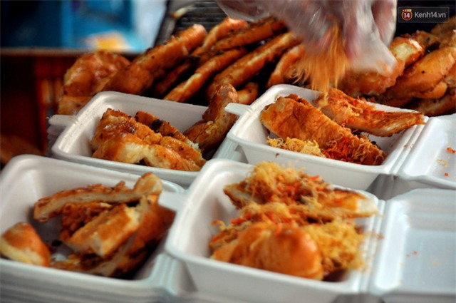 Theo cô Tám, món ăn này được chế biến khá đơn giản, bánh mì được ép xẹp, quệt muối ớt rồi nướng lên bếp than. Sau đó cắt nhỏ từng miếng bánh bỏ thêm gia vị như tương ớt, nước sốt phô mai, chà bông, mỡ hành... theo kiểu Sài Gòn để bánh thơm ngon hơn.