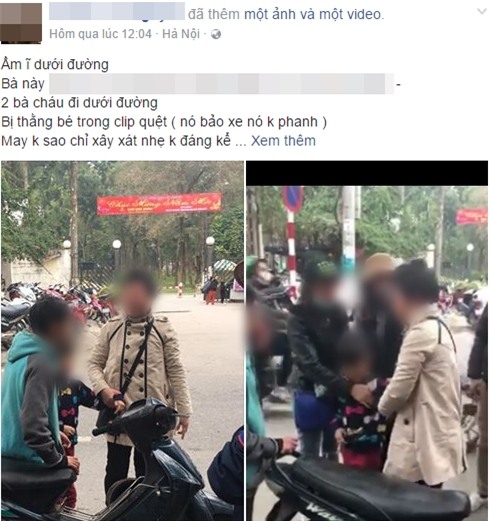 Ngày 14/1, trên trang cá nhân, tài khoản T.T.N có đăng tải hình ảnh kèm clip ghi lại 1 vụ va chạm xảy ra trên đường Nguyễn Đình Chiểu (Hà Nội) giữa 1 cậu bé điều khiển xe máy với 2 bà cháu lưu thông trước đó.