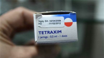 BS. Nguyễn Hồng Sơn cho biết, theo phiếu nhập kho của CTy Tư vấn phát triển đầu tư và thương mại Hồng Thúy-đơn vị nhập khẩu loại thuốc này cho biết, - đây là văcxin Tetraxin lô E 0278 – 1 của Sanofi Pasteur được nhập khẩu từ Pháp, sản xuất ngày 2/4/2009 và có hạn dùng đến ngày 29/2/2012.