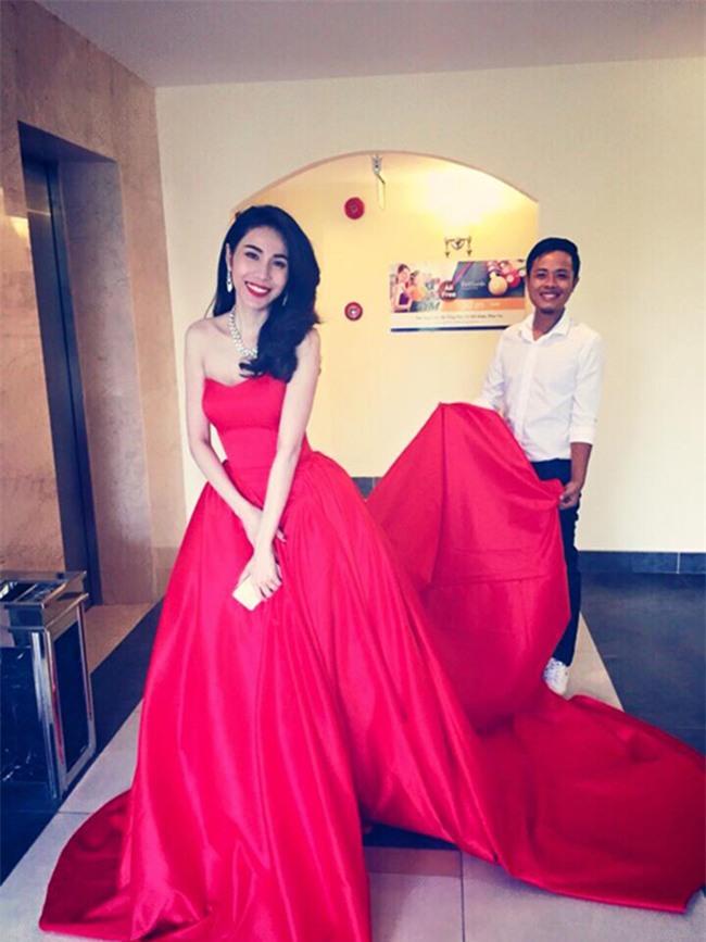Không chỉ các người đẹp Việt, các ngôi sao thế giới cũng rất vất vả với những chiếc váy dài hàng cây số. Huỳnh Hiểu Minh từng thể hiện sự ga lăng khi cầm váy cho Trần Kiều Ân suốt cả thảm đỏ.