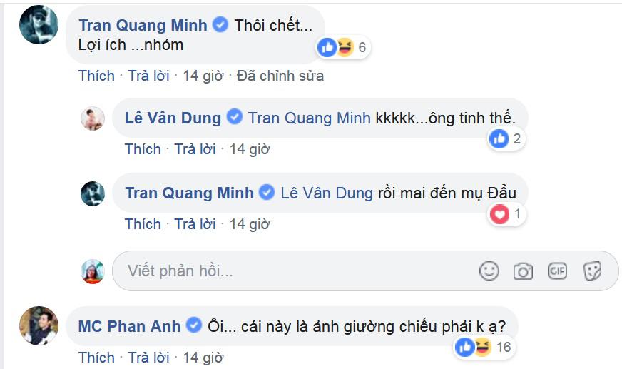 Khi MC Trần Quang Minh cho rằng hết Nam Tào chắc sẽ có ảnh Vân Dung ngủ với Bắc Đẩu, nào ngờ Công Lý tung luôn hình.
