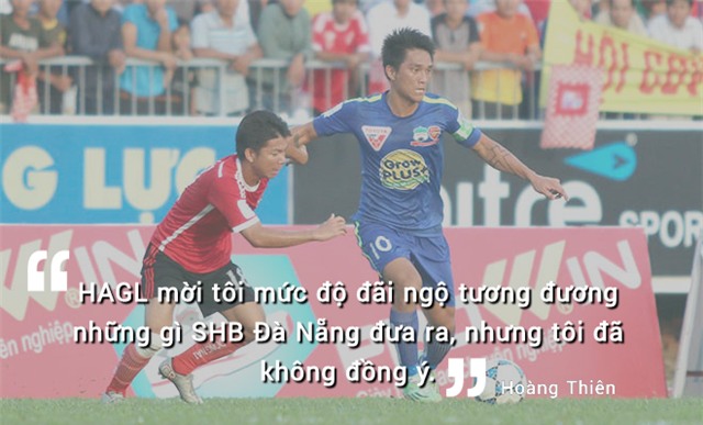 Đầu mùa giải V-League 2016, người ta ngỡ ngàng khi biết tin Hoàng Thiên - một trong những cựu binh hiếm hoi rời HAGL để về với SHB Đà Nẵng, với mức đãi ngộ chỉ tương đương với những gì đội bóng phố Núi đề xuất.