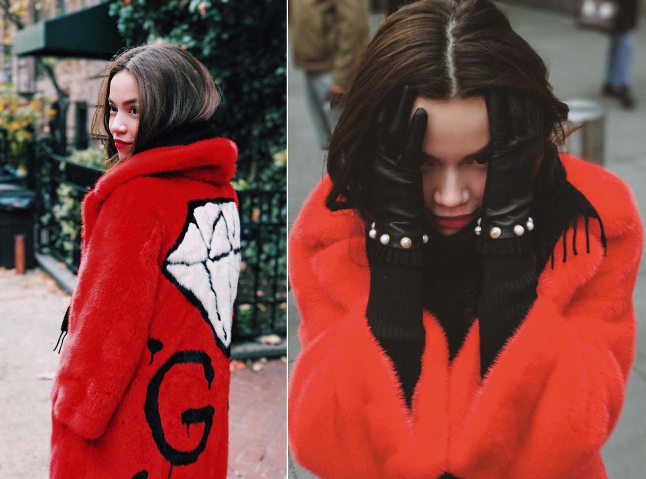Ca sỹ Hồ Ngọc Hà cập nhật hình ảnh ấm áp trên đất Mỹ với dòng status đáng yêu: "Chiều đông phải mặc áo lông..."