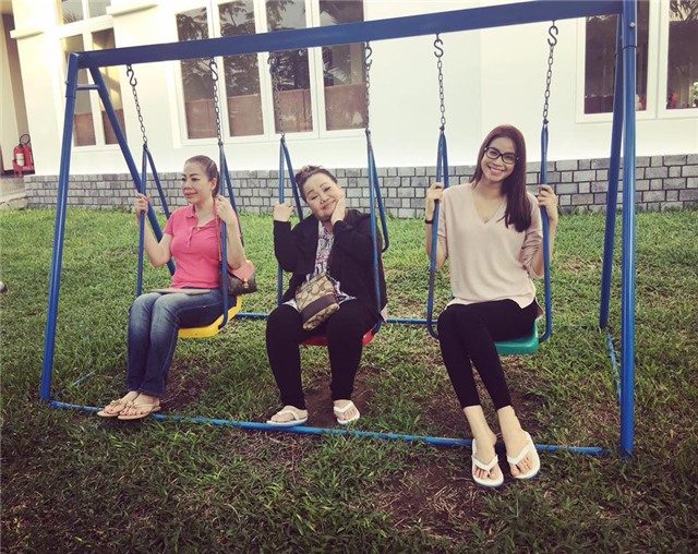 Hoa hậu Phạm Hương thích thú khi ngồi xích đu chụp ảnh cùng nghệ sĩ Ngọc Giàu: "Bến Tre thật trong lành... Chơi xích đu với chị Sáu Ngọc Giàu..."