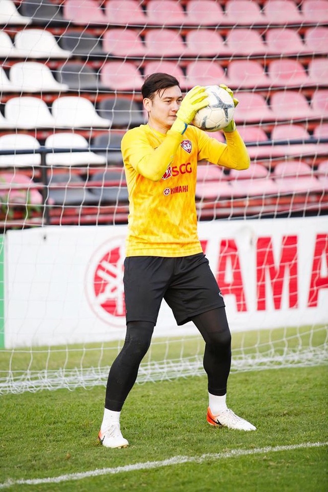 Văn Lâm tập luyện trong màu áo Muangthong United.