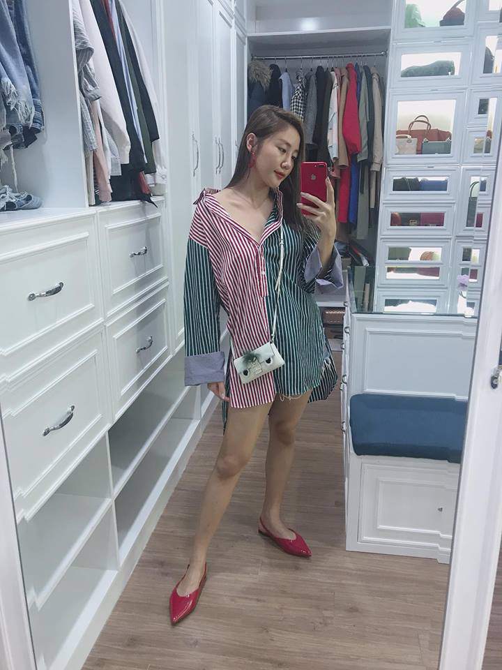 Bức ảnh selfie đã vô tình để lộ tủ đồ hàng hiệu khủng của Văn Mai Hương khiến người hâm mộ choáng ngợp.