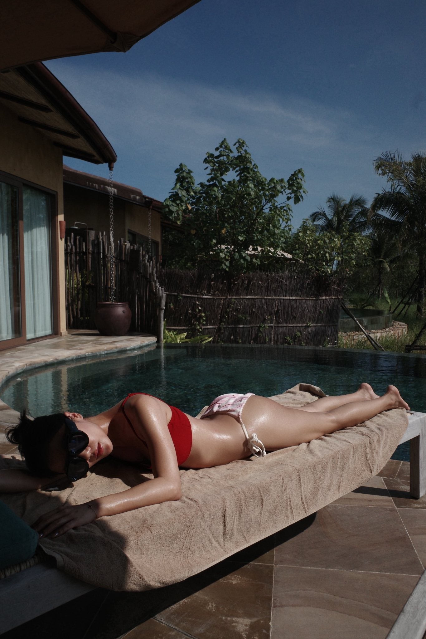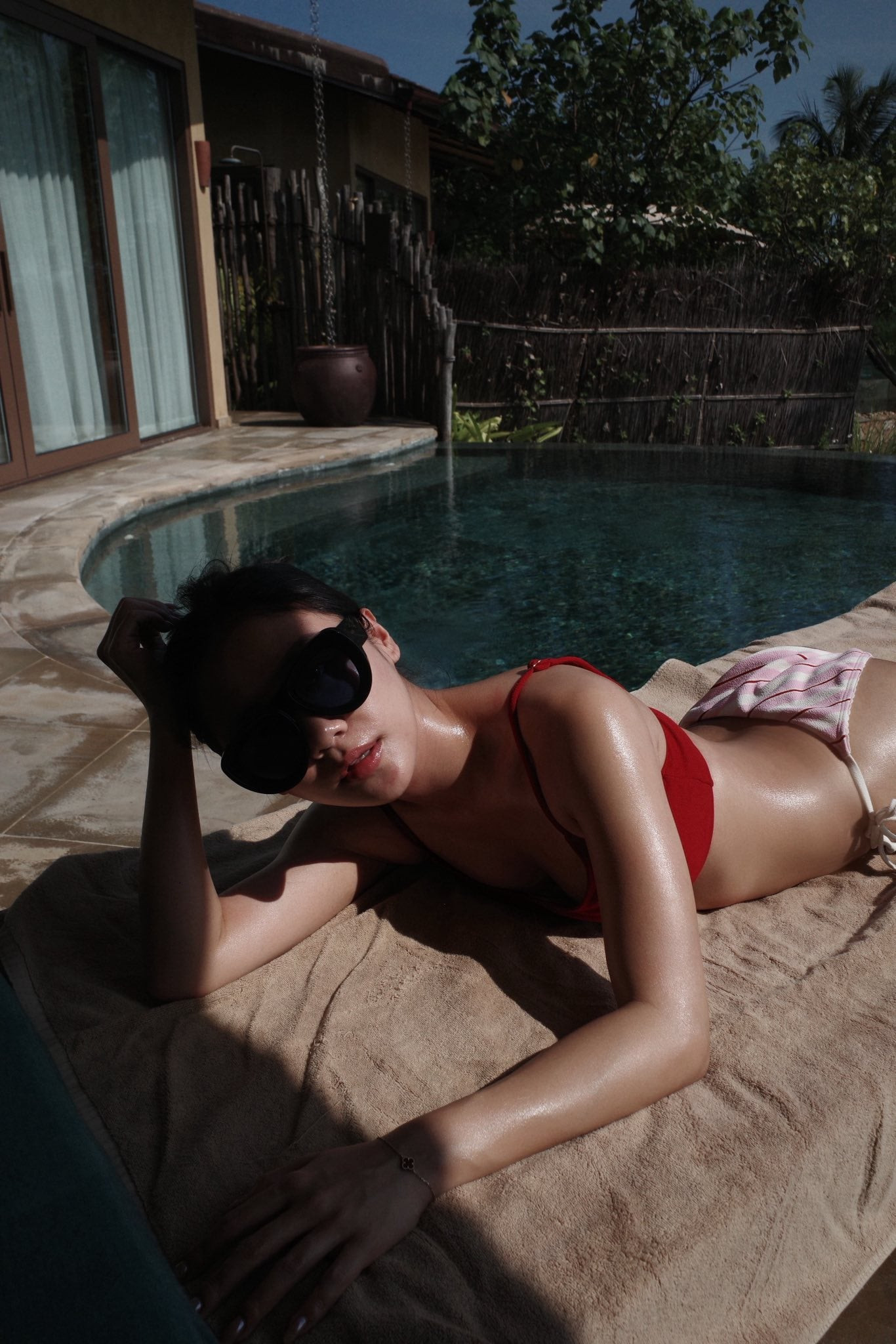 Trong bộ ảnh, Văn Mai Hương lựa chọn các thiết kế bikini và váy mỏng nhẹ, tôn trọn vóc dáng gầy thanh mảnh. Làn da nâu khỏe khoắn dưới nắng biển cùng thần thái tự tin giúp nữ ca sĩ ghi điểm mạnh mẽ. Nhiều khán giả nhận xét cô đang ở giai đoạn thăng hạng về nhan sắc lẫn phong cách.