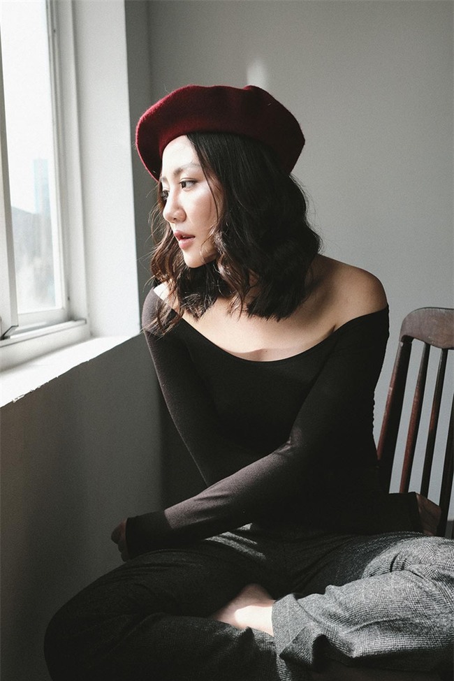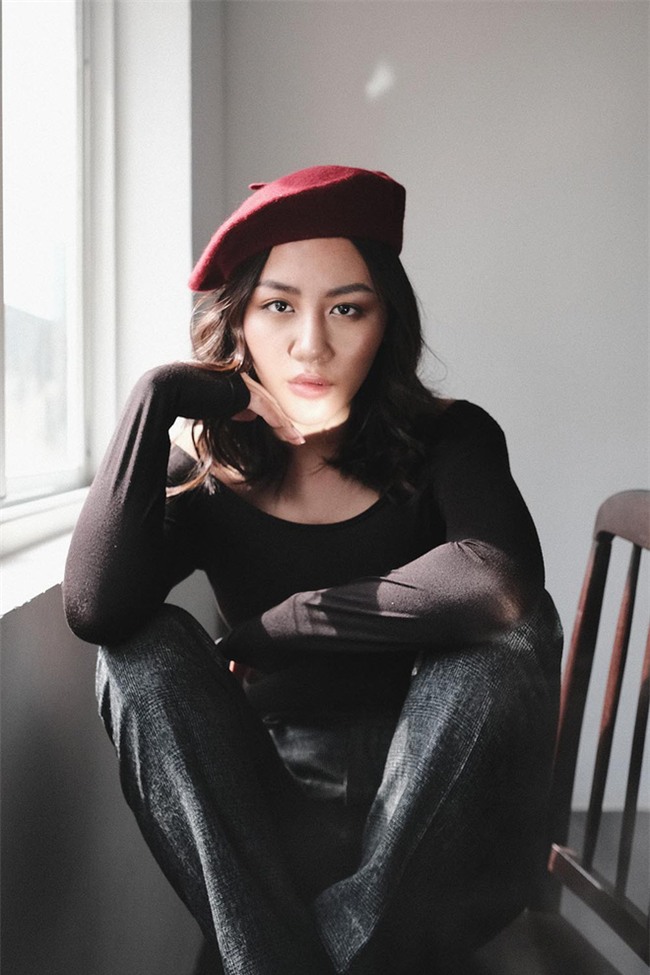 Ngoài gu ăn mặc theo tông màu trầm, gương mặt đa sắc thái biểu cảm của Văn Mai Hương cũng là điểm tạo sự thu hút cho bộ hình này.