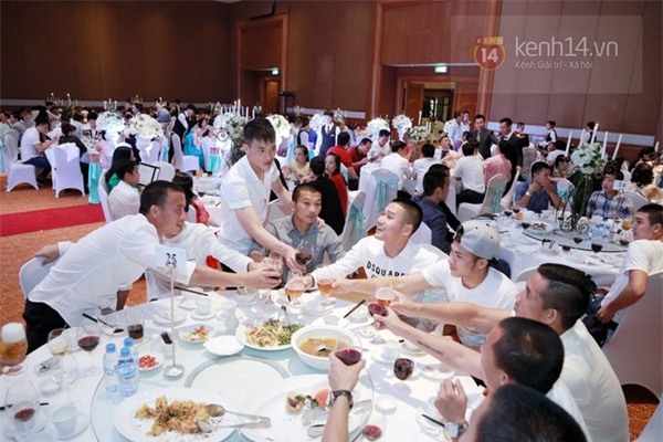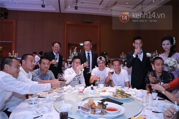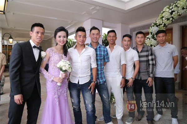 Nhiều đồng đội của Văn Quyết ở CLB T&T Hà Nội tới chúc phúc cho cặp vợ chồng trẻ. Có thể kể tới những cái tên như Đại Đồng, Văn Biển, Quốc Long, Thành Lương, Ngọc Duy...