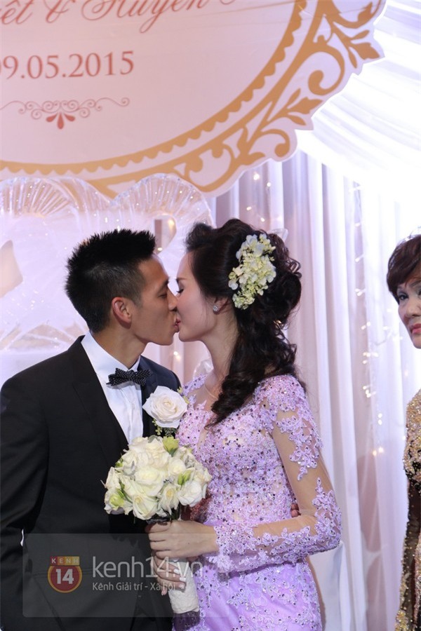 Hôn lễ của Văn Quyết - Huyền Mi bắt đầu vào lúc 18h15 hôm qua 9/5/2015. Sau khi được bố hát tặng bài "Cho con", Huyền Mi đã rơi lệ vì quá hạnh phúc. Cô và Văn Quyết cũng khiến khán phòng vỗ tay rào rào khi 2 người trao nhau nụ hôn nồng nàn.
