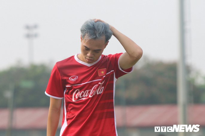 Văn Toàn khoe kiểu tóc mới phá cách trong buổi tập đầu tiên của đội tuyển Olympic Việt Nam.