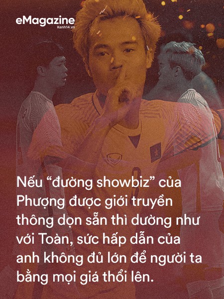 Văn Toàn là cặp bài trùng với Công Phượng từ nhỏ. Nhưng nếu “đường showbiz” của Phượng được giới truyền thông dọn sẵn thì dường như với Toàn, sức hấp dẫn của anh không đủ lớn để người ta bằng mọi giá thổi lên. Cũng nhờ thế, Văn Toàn được sống những ngày êm ả, toàn tâm toàn ý mà chơi bóng, đúng với tính cách của anh.