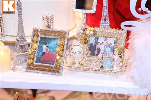 Vân Trang và ông xã thực hiện nghi thức cưới. Cô dâu - chú rể luôn dành cho nhau những ánh mắt tình tứ. Cặp đôi liên tục "khóa môi" đầy say đắm trước sự chứng kiến của đông đảo quan khách.
