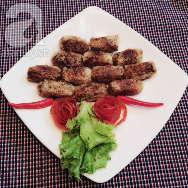 Thịt băm nhỏ, cà chua bổ miếng cau, hành mùi thái khúc.