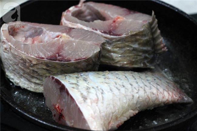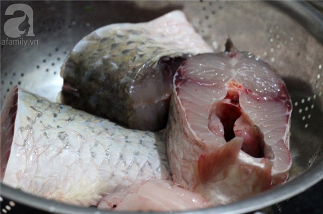 Cá đánh vảy, cắt khúc sau đó đem rửa sạch để ráo nước.