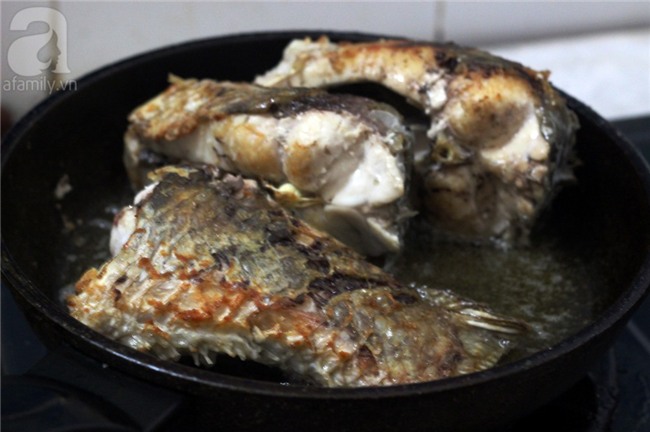 Khi cá chiên vàng đều các mặt thì gắp ra khỏi chảo.