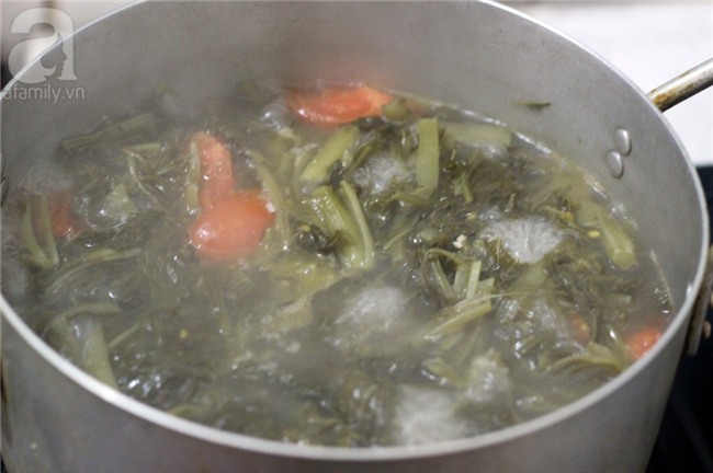 Sau đó cho 1 tô canh nước vào đun sôi.