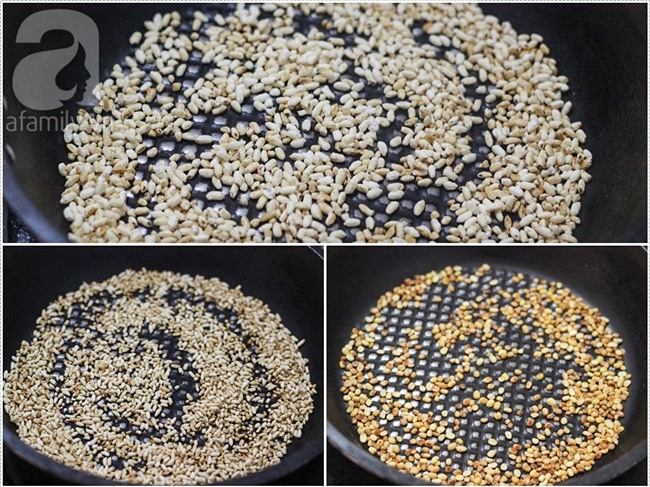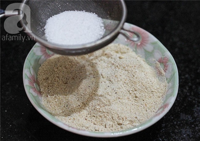 Rang muối cho khô rồi trộn chung muối với hỗn hợp bột vừa xay.