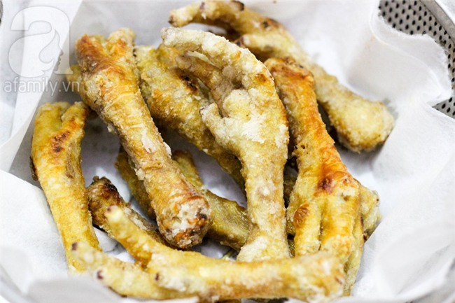 Vớt sả ra rổ có giấy thấm dầu cho ráo.