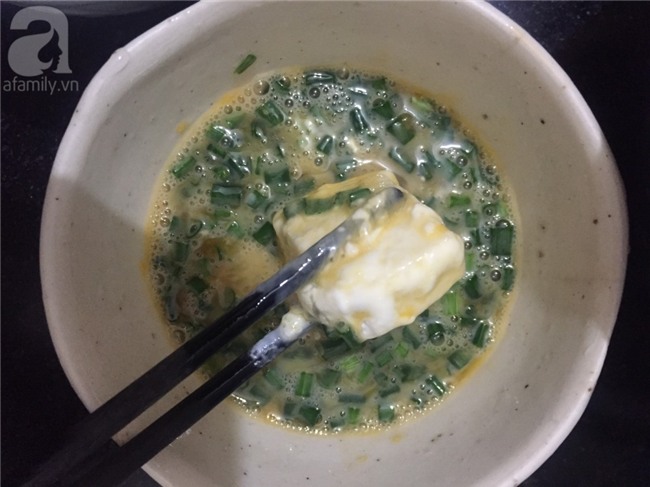 Tiếp theo nhúng đậu phụ vào bát trứng.