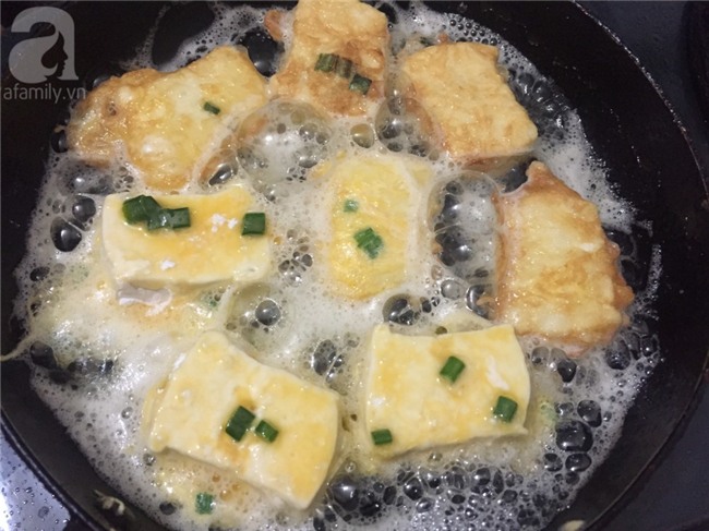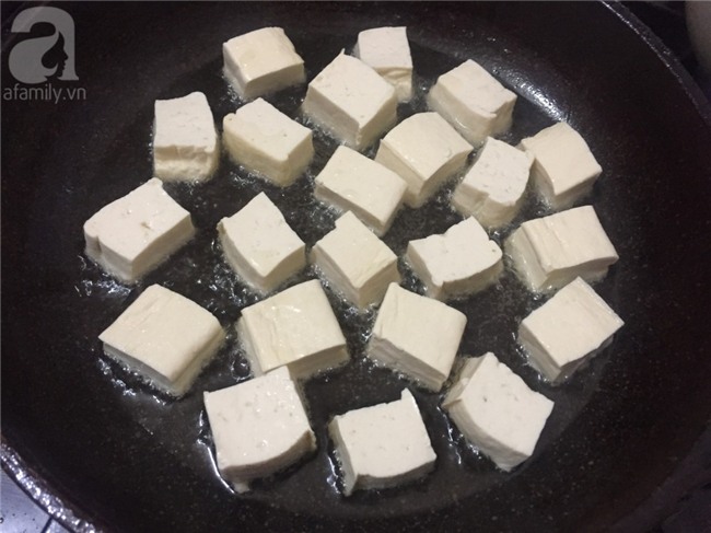 Cho đậu phụ vào chiên vàng đều các mặt.