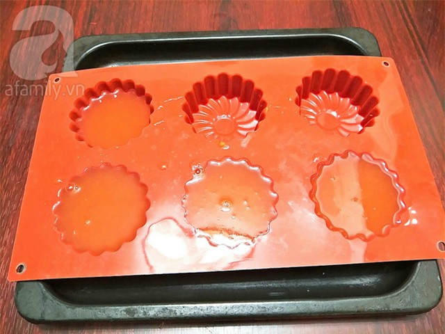Rót hỗn hợp thạch dưa hấu vào khuôn, chờ cho thạch nguội mới đem cất ngăn mát tủ lạnh 2 tiếng cho thạch đông cứng lại là có thể mang ra thưởng thức.