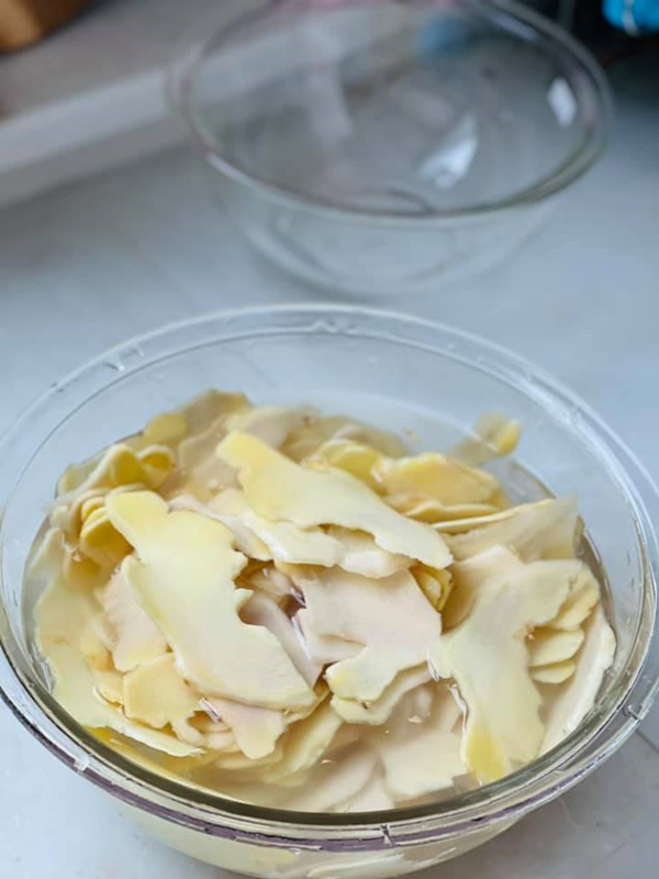 - Gừng rửa sạch, thái lát mỏng khoảng 0.1mm